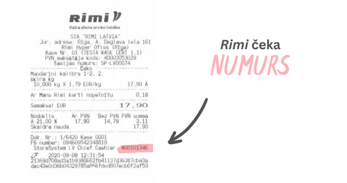 Čeka numuru - atradīsi čeka lejas daļā. Čeka oriģinālu būs jāuzrāda saņemot balvu.
